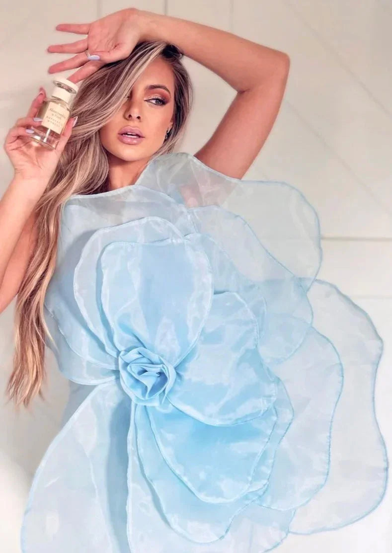 La robe mini Bianca à fleurs à une épaule est un chef-d'œuvre d’élégance et de style raffiné. Confectionnée en organza structuré, elle se distingue par un appliqué floral surdimensionné qui apporte une touche audacieuse et artistique.