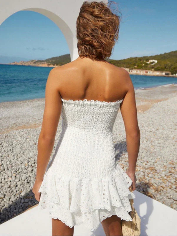 Entrez dans l'élégance sans effort avec la robe mini volant Cerys, alliant sophistication et charme ludique. Son haut bandeau sans bretelles met en valeur les épaules, tandis que son dos ouvert élégant ajoute une touche raffinée. Conçue pour toutes les occasions, ses détails en volants délicats et sa silhouette flatteuse en font une pièce incontournable de votre garde-robe.