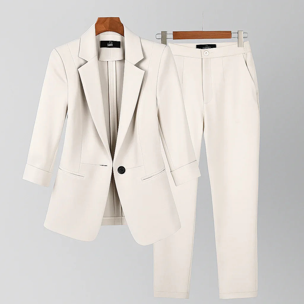 – Pantalon droit assorti pour une coupe flatteuse et intemporelle