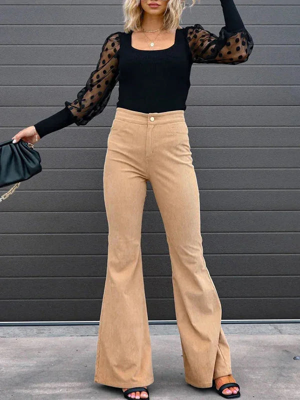 Découvrez notre pantalon en velours côtelé, un ajout élégant et confortable à votre garde-robe. Avec sa coupe slim flatteuse et ses jambes évasées tendance, il est parfait pour toutes les occasions et toutes les saisons.