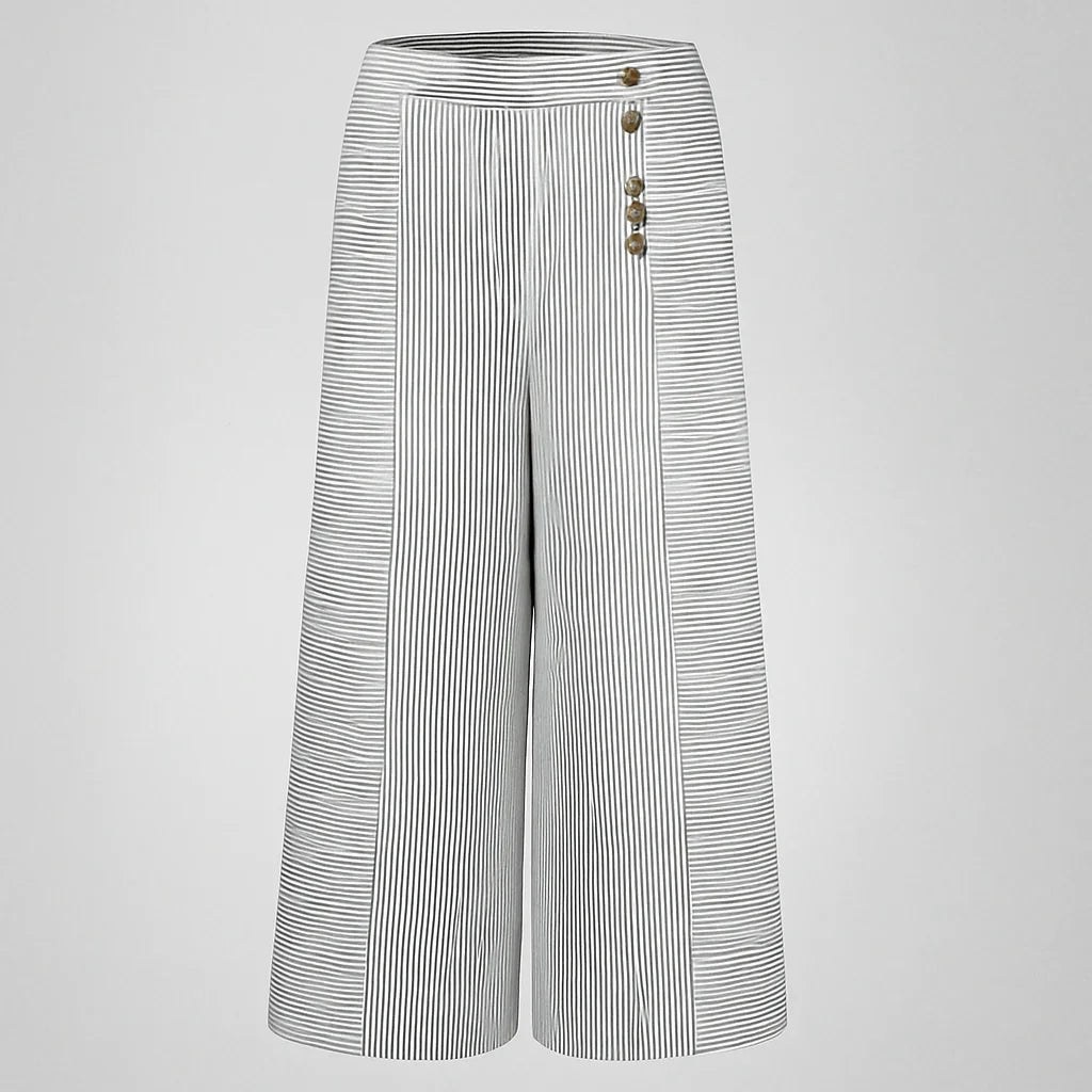 Pourquoi choisir ce pantalon large rayé ? Les femmes adorent sa coupe aérienne, son flair rétro et sa forme flatteuse – un article incontournable pour un confort stylé par temps chaud.