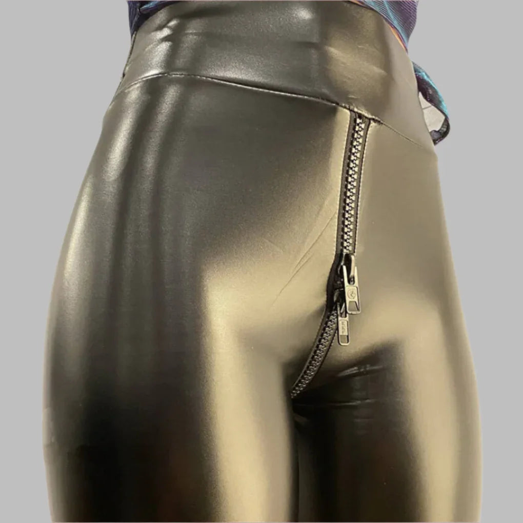 Transformez votre garde-robe d'hiver avec ces leggings élégants et brillants, dotés d'une fermeture éclair moderne. Conçus pour épouser parfaitement votre silhouette, leur finition brillante et leur coupe fuselée créent un look flatteur et raffiné, idéal pour les soirées décontractées ou les occasions chics.