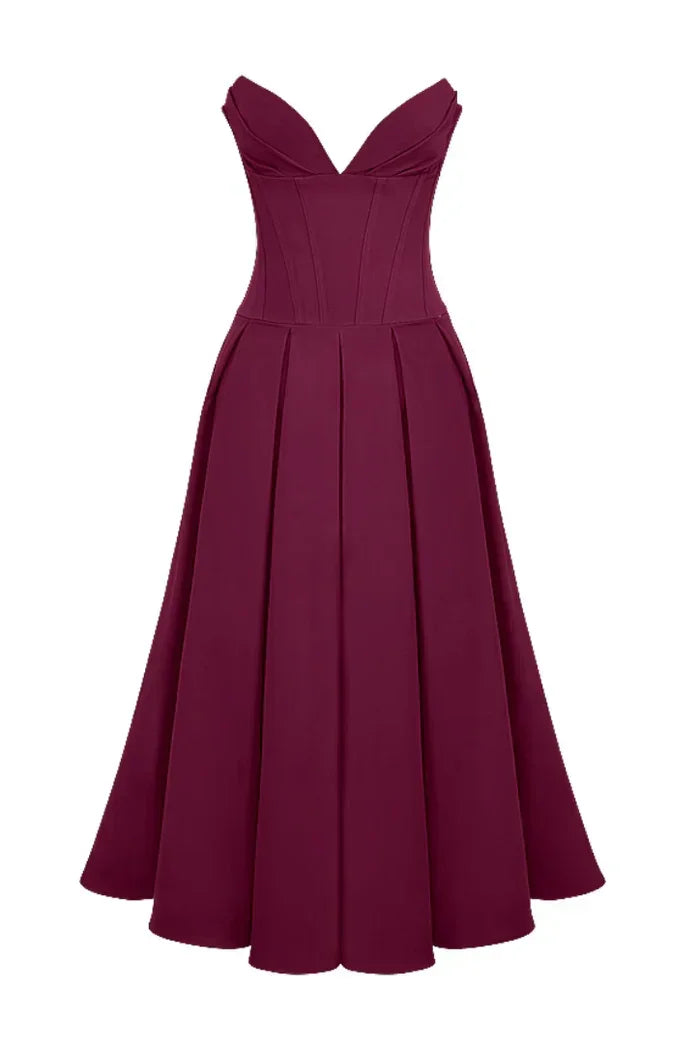 L'élégance raffinée rencontre l'attrait moderne avec la robe midi corset Lorelei. Conçue pour flatter votre silhouette, cette robe décolletée présente un corset structuré et des détails plissés pour un mouvement gracieux.