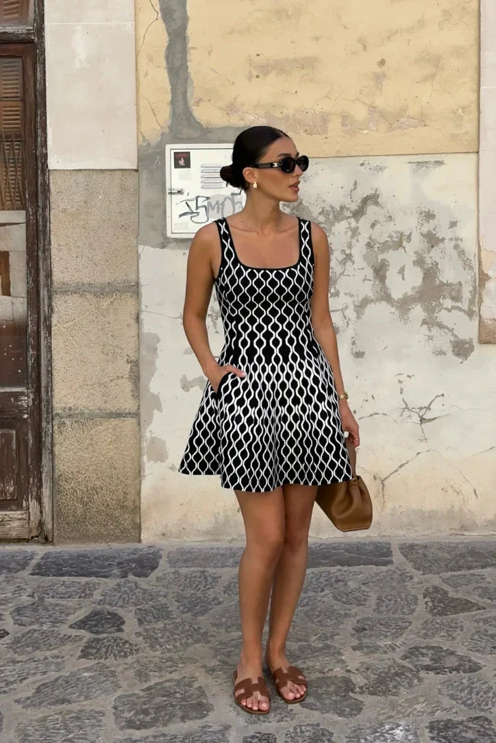 Affichez votre style avec la Robe Mini Tricotée Marissa, une pièce élégante et sophistiquée pour une élégance sans effort. Son motif contrasté frappant et sa coupe sans manches mettent en valeur votre silhouette tout en offrant un ajustement confortable.