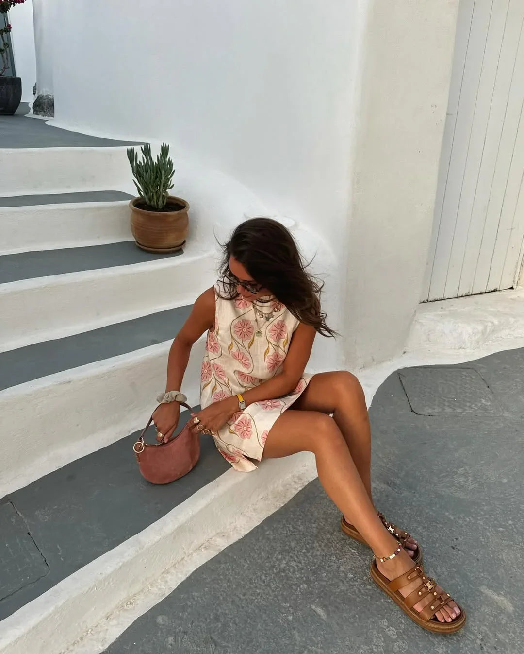 Élégante et idéale pour les journées chaudes, la Robe Courte Sans Manches Imprimée Nicole est un incontournable de votre garde-robe. Avec son col ras du cou flatteur et son design léger, elle allie confort et sophistication.