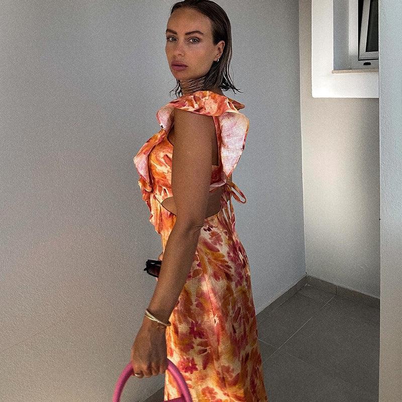 Adoptez une élégance sans effort avec la robe maxi à volants Nova, un parfait mélange de charme et de sophistication. Conçue avec des volants délicats et des détails floraux complexes, cette robe crée une silhouette gracieuse qui met en valeur votre beauté naturelle.