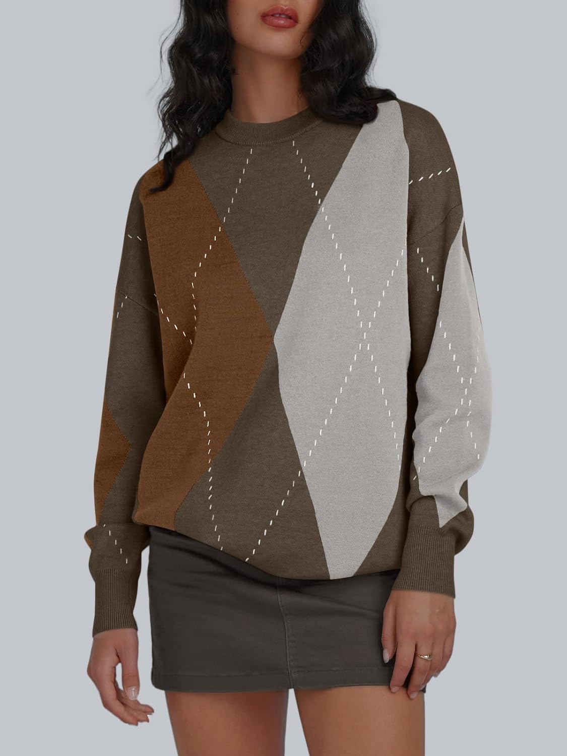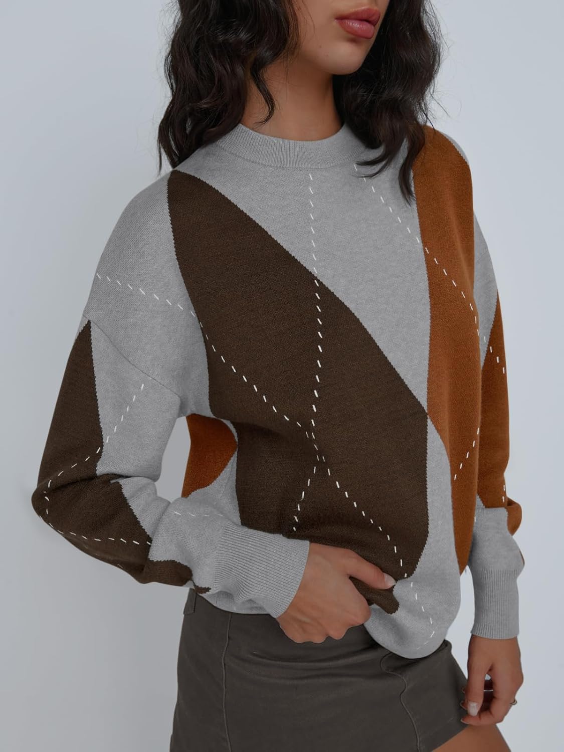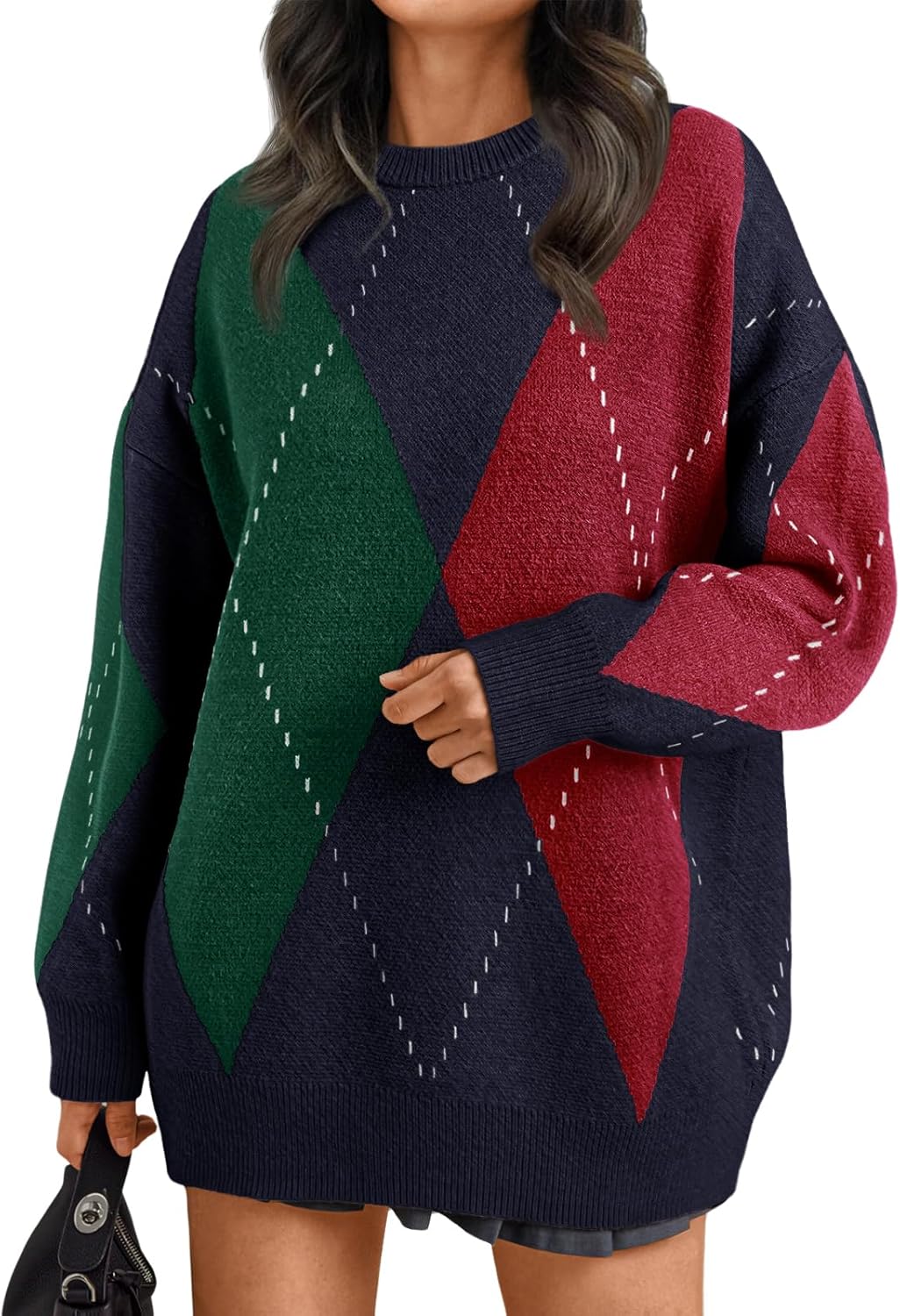 DESIGN CHIC : Avec un motif argyle intemporel et un bloc de couleurs tendance, ce pull arbore un col rond, une coupe ample et des manches longues à épaule tombante, en faisant un favori vintage pour chaque saison.