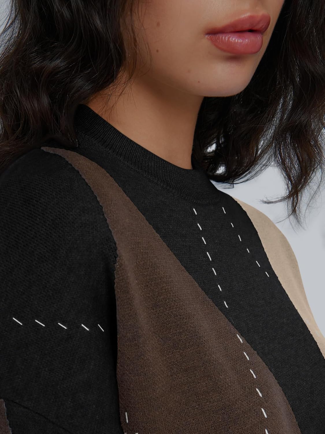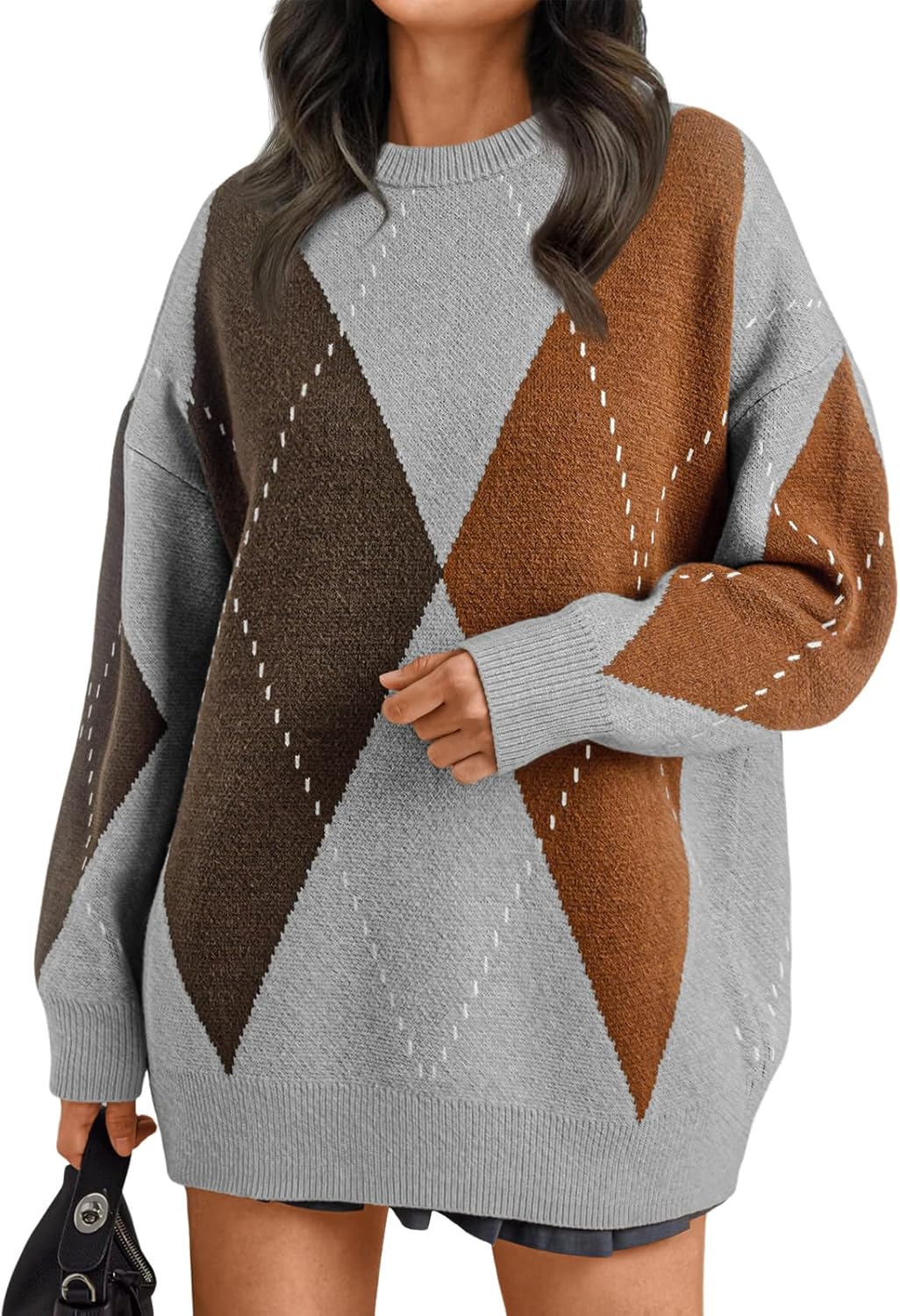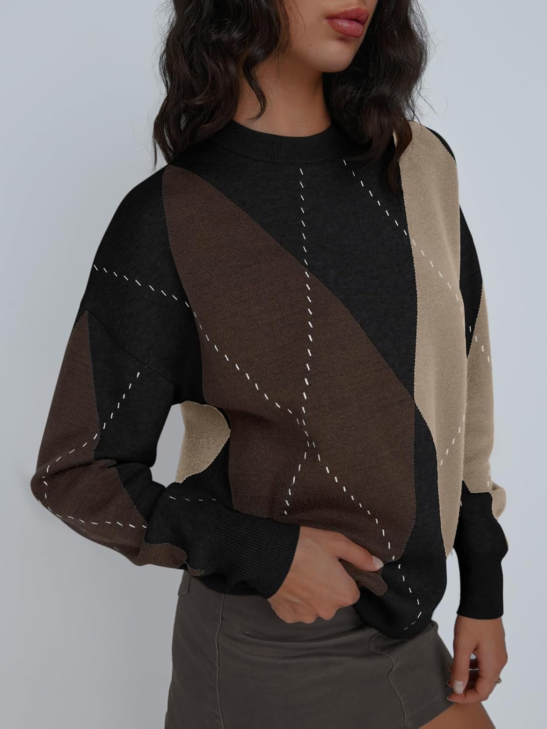 DESIGN CHIC : Avec un motif argyle intemporel et un bloc de couleurs tendance, ce pull arbore un col rond, une coupe ample et des manches longues à épaule tombante, en faisant un favori vintage pour chaque saison.