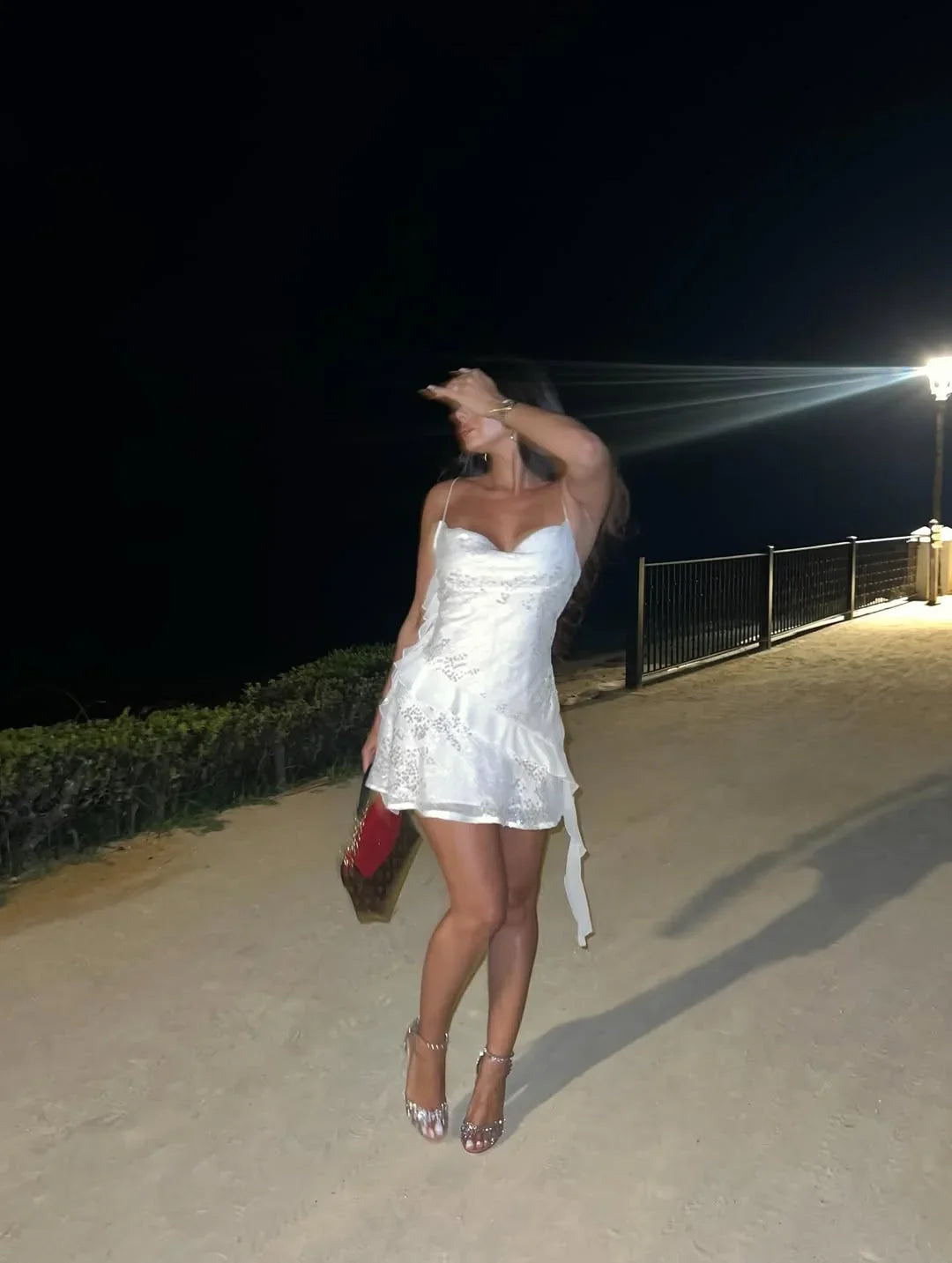 La Robe Mini Sereine combine éclat et douceur dans une silhouette portable. Associez-la à des bijoux délicats et vos talons préférés pour un glamour instantané. Une pièce remarquable pour chaque occasion nécessitant un charme époustouflant.