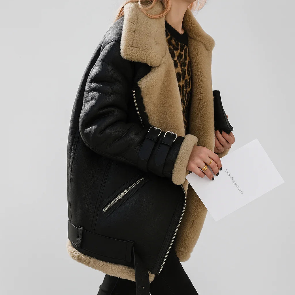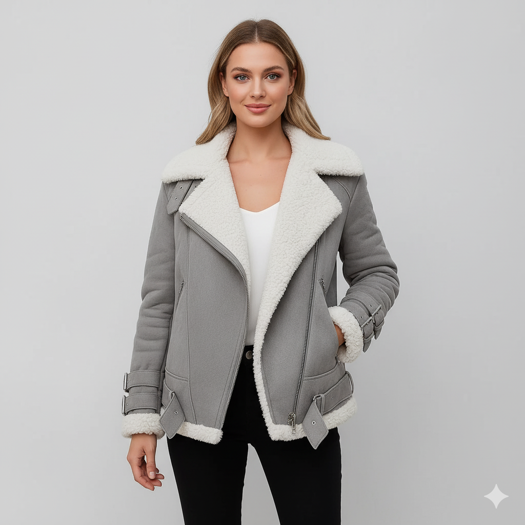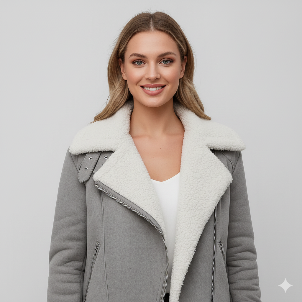 - Design inspiré des pilotes avec col oversize et fermeture éclair asymétrique