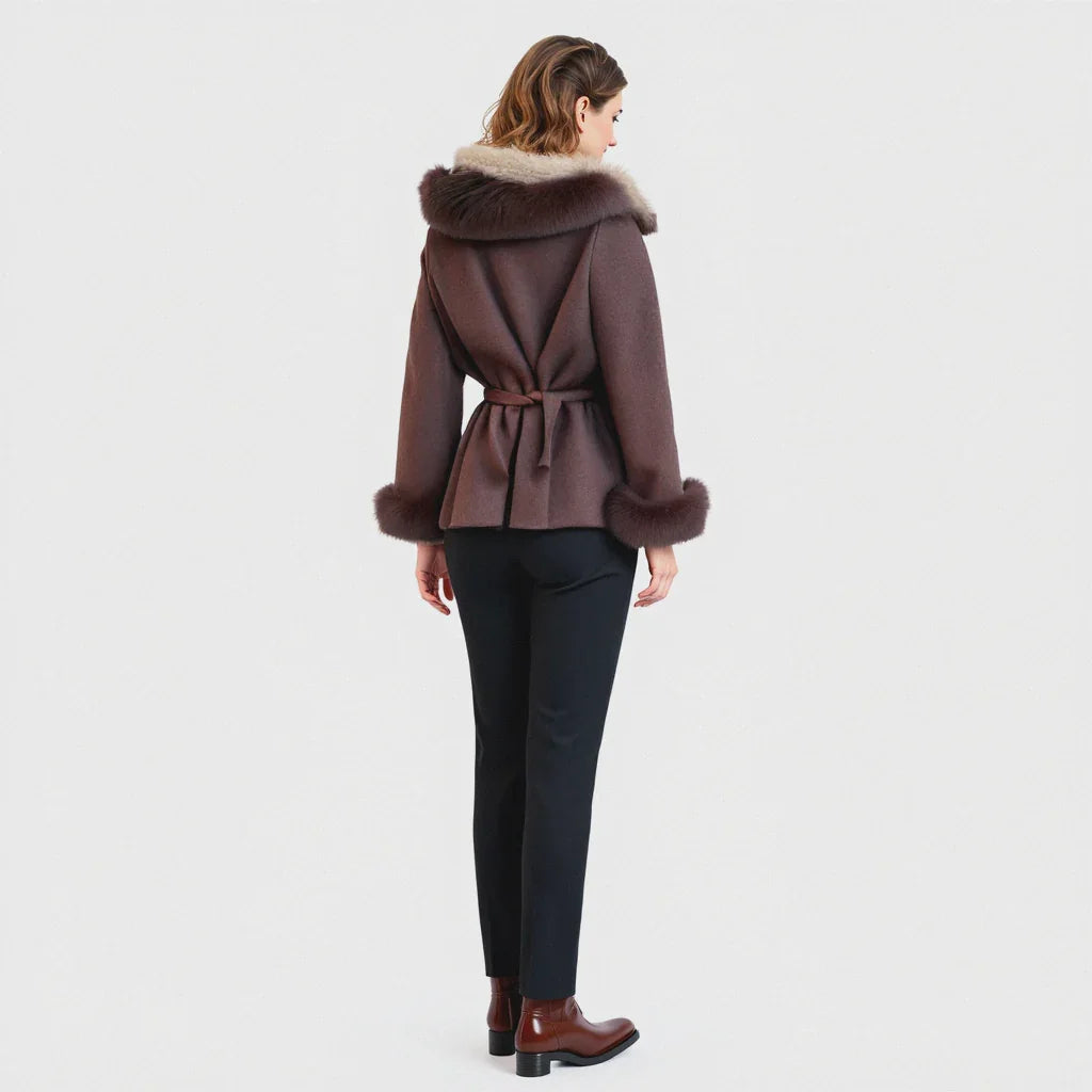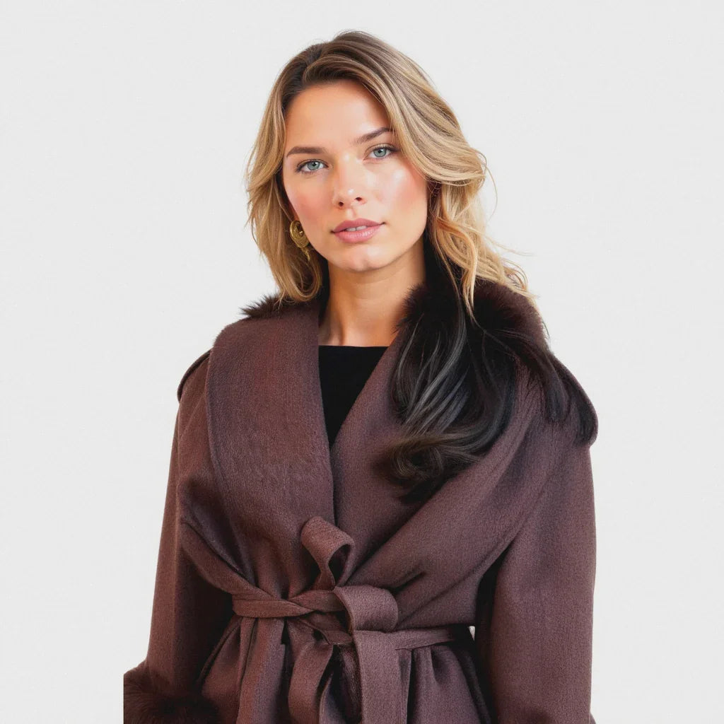 Confectionné en laine de première qualité, ce manteau offre une texture douce et lisse, alliant confort et sophistication. Les manchons en fausse fourrure amovibles permettent une transition facile entre un chic discret et une élégance remarquable.